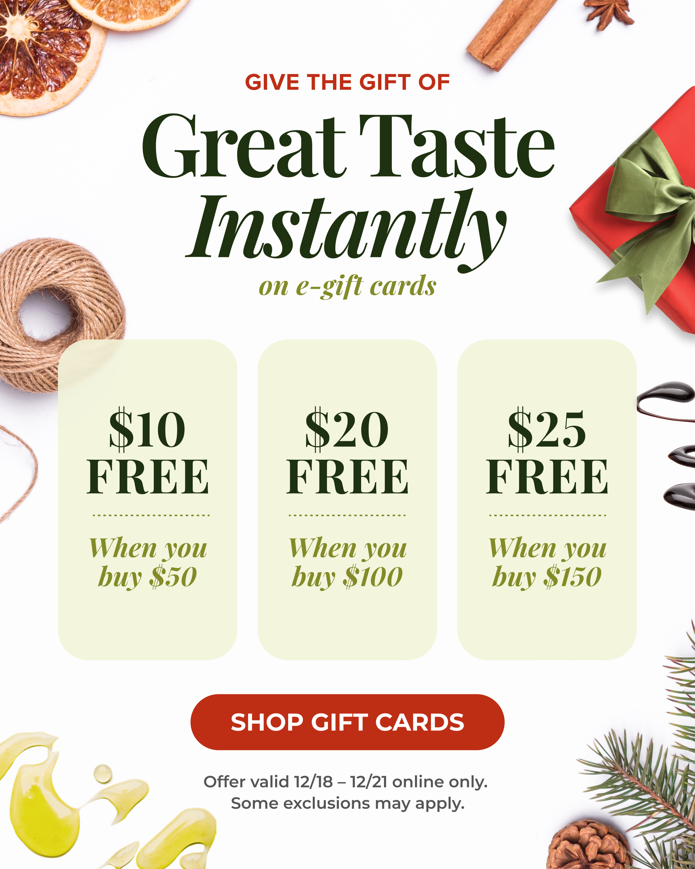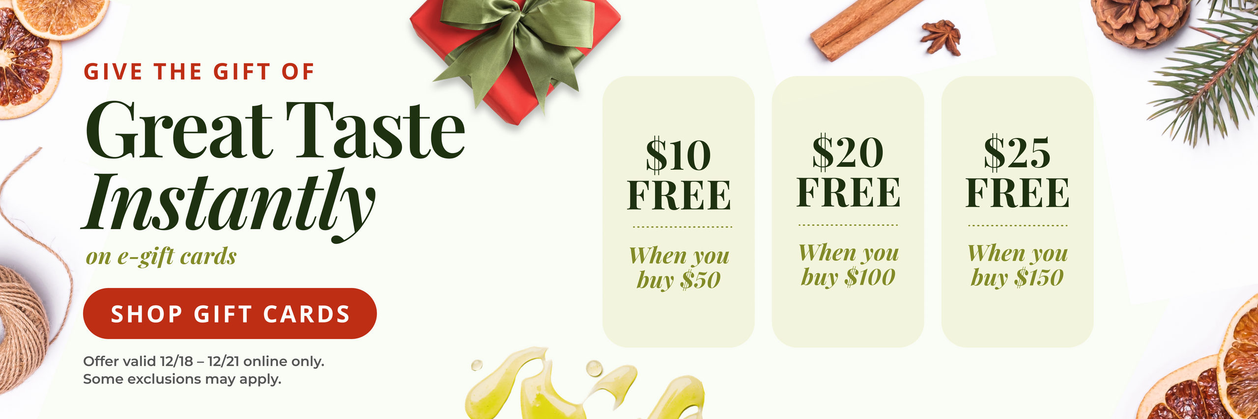 Our wide selection of olive oil and balsamic vinegars are second to none, with over 50 unique types, including infused oils, to meet every taste and cooking method. Tuscan herb, chipotle, fresh basil-infused oils, as well as balsamic varieties like dark chocolate pomegranate and Sicilian lemon balsamic varieties, are all among our unique offerings. We also offer a unique assortment of sea salts, jams, spices, chocolates, gift baskets, and more - which complement and pair our gourmet collection perfectly!