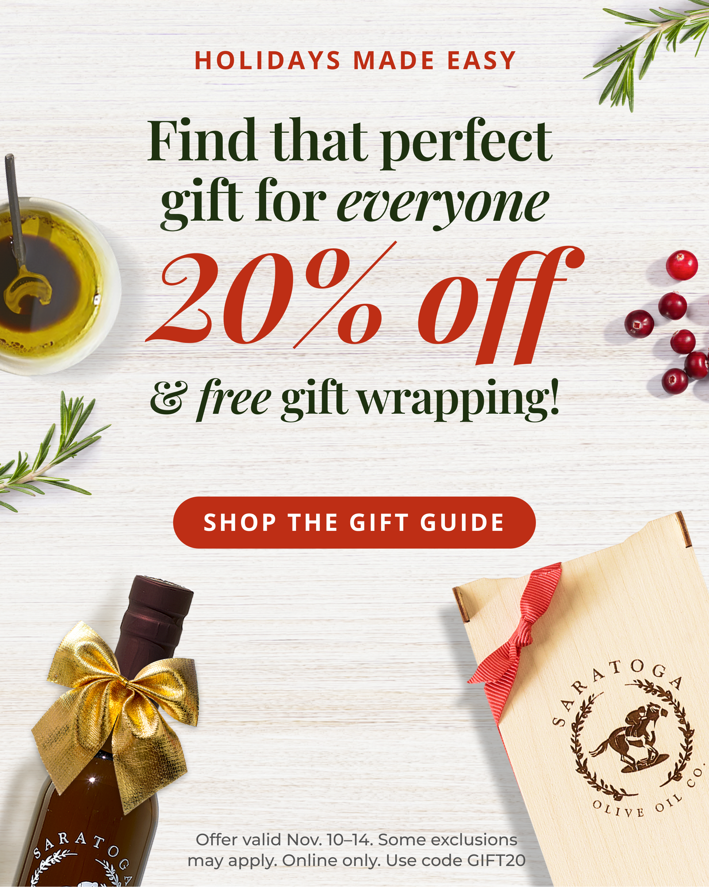 At Saratoga Olive Oil Co., we source only the highest-grade extra-virgin olive oils from around the globe. Established in 2011, our family-owned business is an acclaimed source of gourmet olive oils, balsamic vinegars, and culinary accessories, both online and in-store.