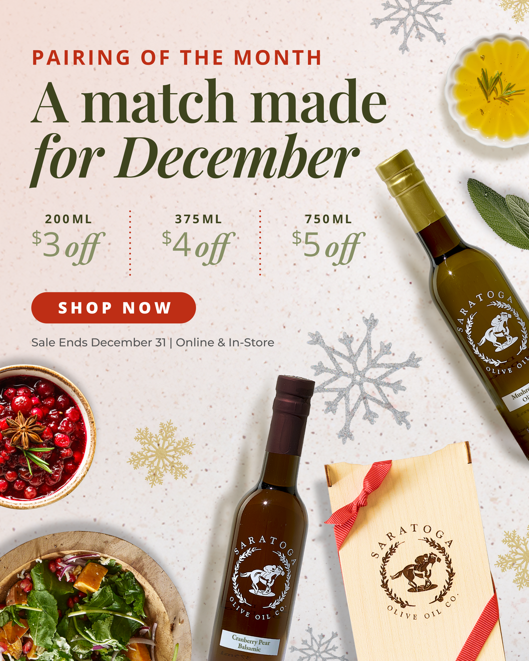 At Saratoga Olive Oil Co., we source only the highest-grade extra-virgin olive oils from around the globe. Established in 2011, our family-owned business is an acclaimed source of gourmet olive oils, balsamic vinegars, and culinary accessories, both online and in-store.