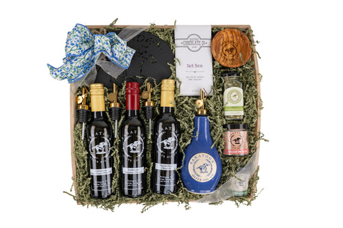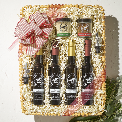 These gourmet gift baskets are not only visually stunning but also enticing to the taste buds. This makes them great gifts to give at different events throughout the year - whether it's Christmas, Mother's Day, a housewarming party, or just to show appreciation to someone special. With Saratoga Olive Oil's gourmet olive oil gift baskets you can give exceptional flavor and culinary exploration as a special gesture. These harmonious gourmet gift baskets demonstrate thoughtfulness and appreciation of quality ingredients while leaving an everlasting impression on loved ones. Find the perfect gourmet olive oil and vinegar gift basket to show your appreciation.