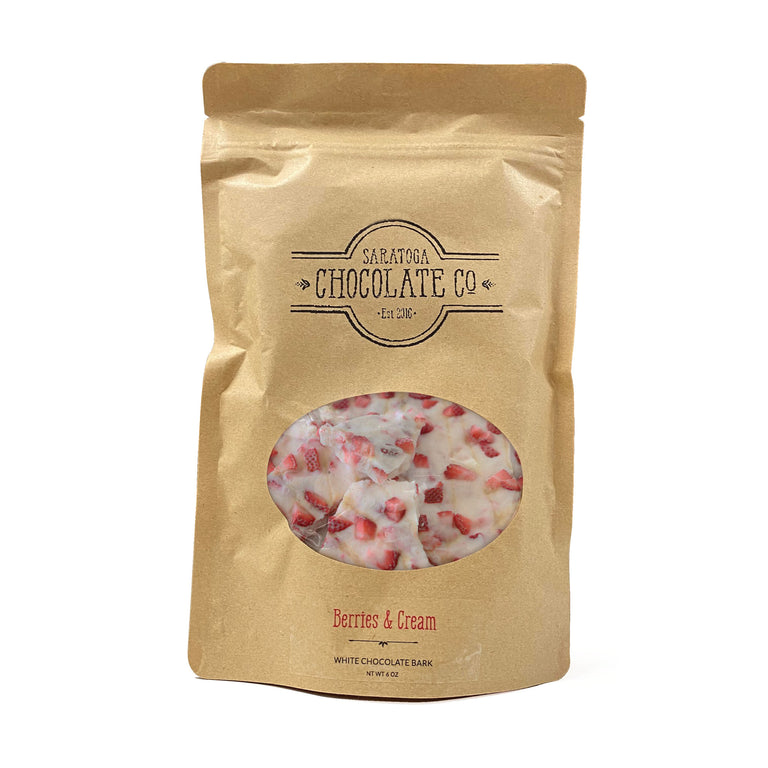 Our Berries and Cream bark infuses strawberries and raspberries that have basked in the warm summer sun with silky, velvety white chocolate. Made with cocoa butter (milk and dark chocolate contain cocoa solids), this sweet treat is a nice indulgence when you want to treat yourself.