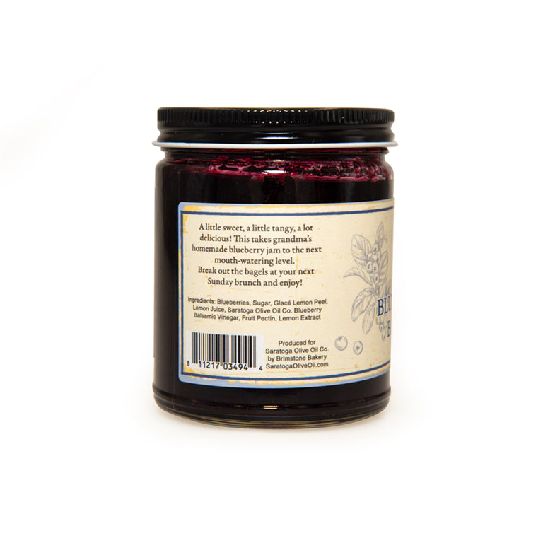Ingredients: Blueberries, Sugar, Glace Lemon Peel, Lemon Juice, Saratoga Olive Oil Co. Blueberry Balsamic Vinegar, Fruit Pectin, Lemon Extract