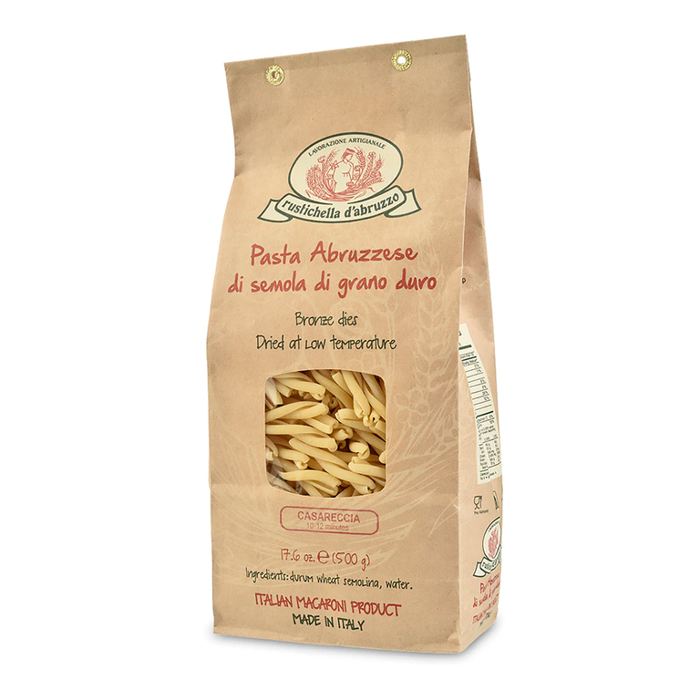 The Casereccia is a type of double S-shaped spindle pasta with a characteristic central groove, originally from Sicily but also known in other regions of southern Italy. Ideal with red sauce with vegetables or seafood seasonings.