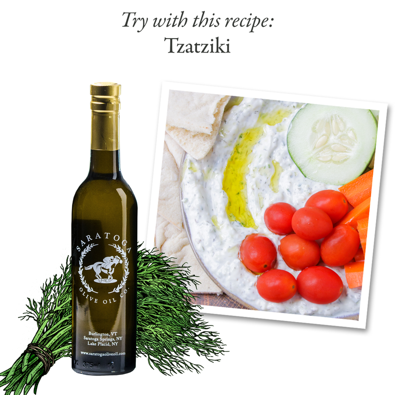 Fernleaf Dill kinda stole the regular dill’s thunder as it is actually more flavorful and robust. This medium-bodied Fernleaf Dill Olive Oil compliments rye bread beautifully and is amazing when added to hummus and pita bread. You can use this wherever you typically use fresh dill! We find this to be delightful as a bread dipping oil with a few red pepper flakes. Aromatic and fresh!