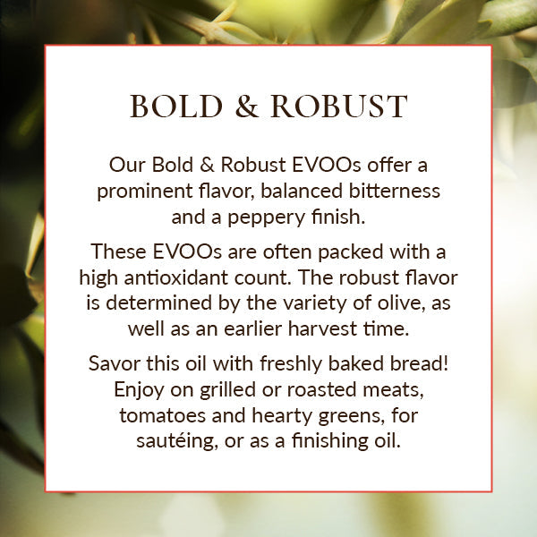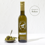 This early harvest Kalamata is sweet and fragrant with notes of rose petal, artichoke and a creamy mouth feel followed by a wallop of pepperiness consistent with high Oleocanthal content. The combination of picking the fruit early, at an extremely low green maturity index and minimal processing, has resulted in extraordinarily high and healthful amount of antioxidants!