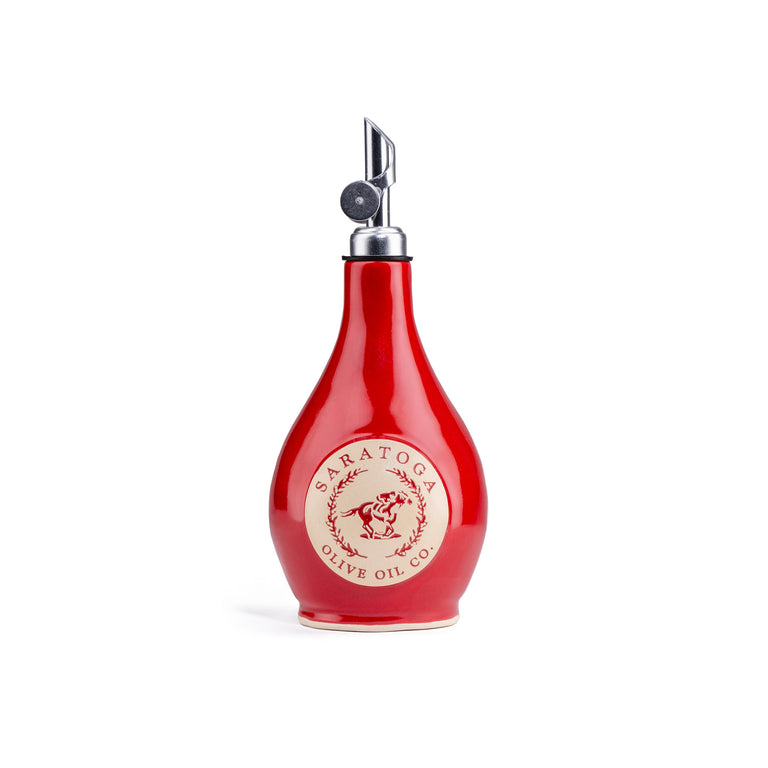 These olive oil and balsamic vinegar cruets are made by hand in the USA by Grey Fox Pottery and come in a variety of colors! All cruets are branded with the Saratoga Olive Oil Company Logo. These beautiful cruets are guaranteed to brighten up your kitchen!