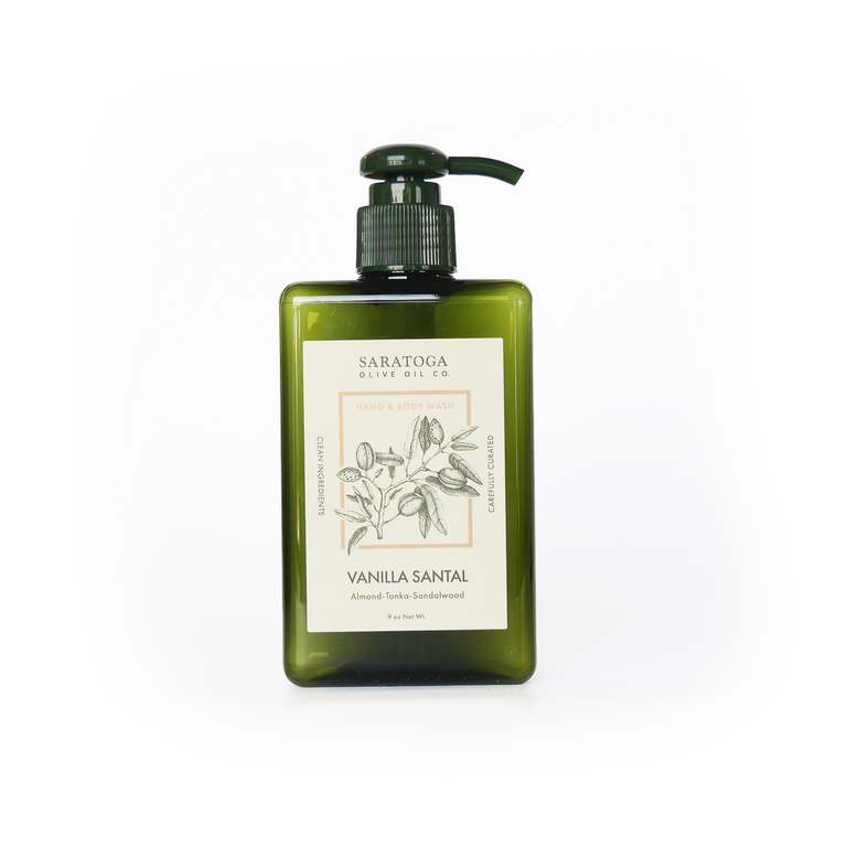Vanilla Santal (9oz): A vibrant and fresh representation of vanilla, santal and jasmine. Luxurious Santal mingles with heady jasmine, amber and warm dried almond. Green undertones of water lily and cashmere elevate this fragrance making this an organic understated everyday fragrance.