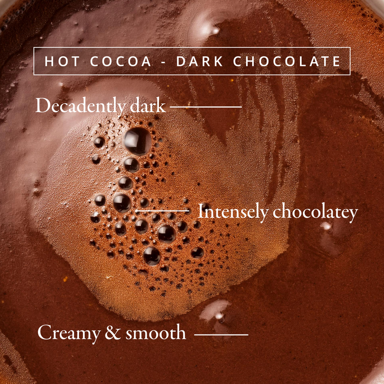 Warm up with our handcrafted hot chocolate, available in both decadent milk and bold dark varieties. Our milk chocolate cocoa offers a silky, smooth sweetness that envelops your senses in creamy comfort with every sip. The dark chocolate version brings a deeper, more robust cocoa flavor, perfect for those who appreciate a richer, more intense experience.