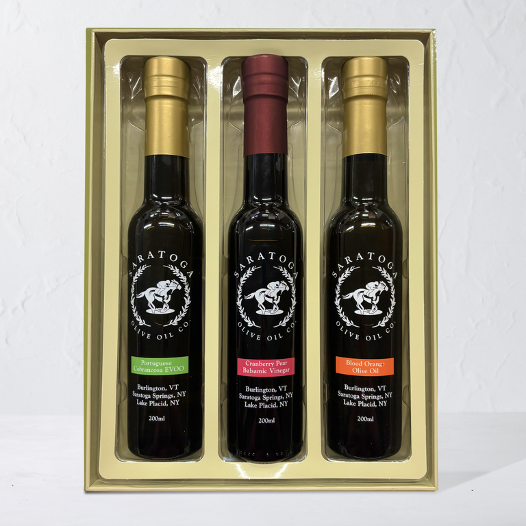 Discover the Modern Pantry Trio, featuring three of our finest flavors in elegant 200ml limited-edition colored bottles. This curated gift set includes the vibrant Cranberry Pear White Balsamic, the zesty Blood Orange Olive Oil, and the refined Cobrancosa Plain Extra Virgin Olive Oil. Perfect for those who appreciate gourmet quality and sophisticated taste, this collection enhances any culinary experience with distinctive, balanced flavors.