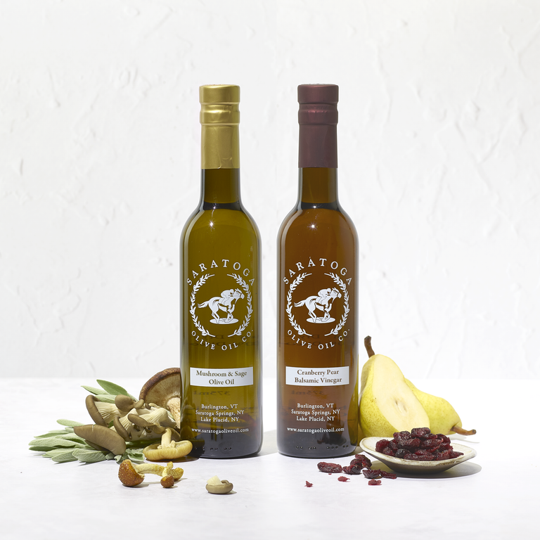 Mushroom & Sage Olive Oil: Arriving in layers of flavor, our Mushroom Sage Olive Oil is heavenly on roasted sweet potatoes. Croutons crunch with the herbaceous flavor and a drizzle or glug adds pizazz to soups, stews, and savory chowders. This olive oil (when paired with our Cranberry Pear Balsamic Vinegar) takes poultry and pork to a whole new level! As a staple in traditional thanksgiving stuffing, you’ll be asked to bring the main side dish for years to come!