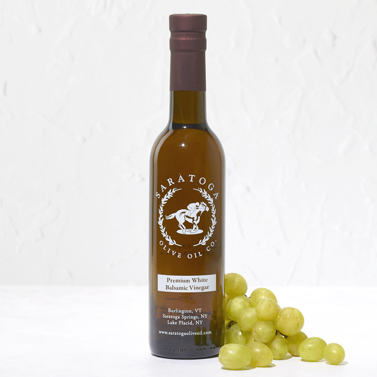 Made with White Trebbiano Grape Must (juice), our Premium White Balsamic has a smooth and balanced taste. This crisp with a touch-of-sweetness balsamic will add pizzazz to your next chicken or fish dish. If you appreciate our Champagne Balsamic Vinegar, you will thoroughly enjoy this delight. Grab a bottle or ten before tomato season and don’t say we did not warn you. Easily marry with a complimentary olive oil for a real salad stunner.