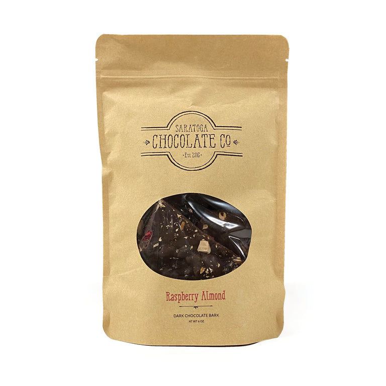 Dark chocolate (cocoa mass, sugar, vanilla, soy lecithin), toasted almonds, raspberries