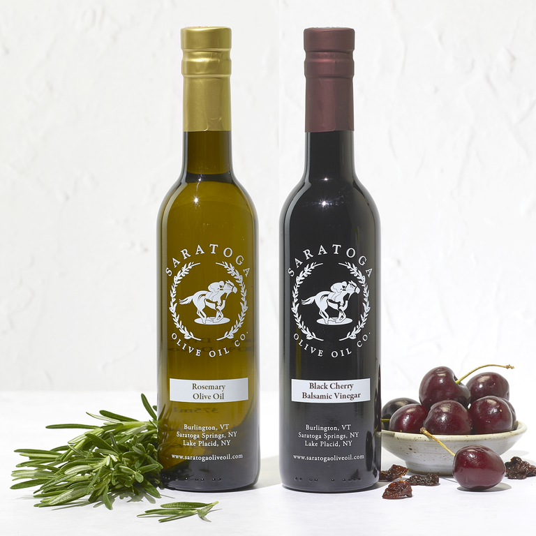 Rosemary Olive Oil: Dried herbs are amazing, but our Rosemary Olive Oil really stands out as a superior option. Conveniently stir in soups, or enjoy with freshly baked bread! As a popular addition to lamb and pork chops, this fused olive oil pairs well with our Black Cherry Balsamic. Perfect for roasting chicken, lamb, potatoes, and root vegetables.