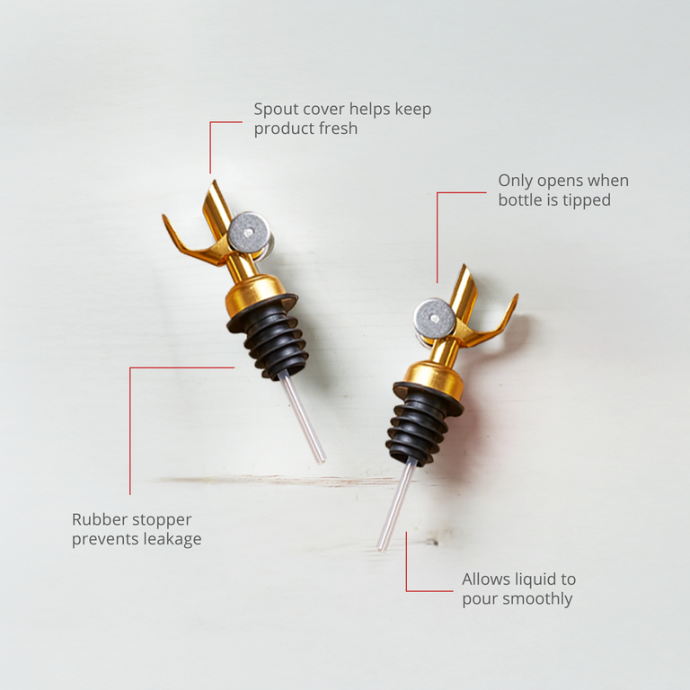 The perfect pour spout for your favorite olive oil or balsamic vinegar. This Self-Closing Pour Spout allows you to control the flow so you don't waste a drop of precious product.