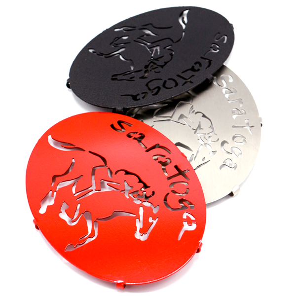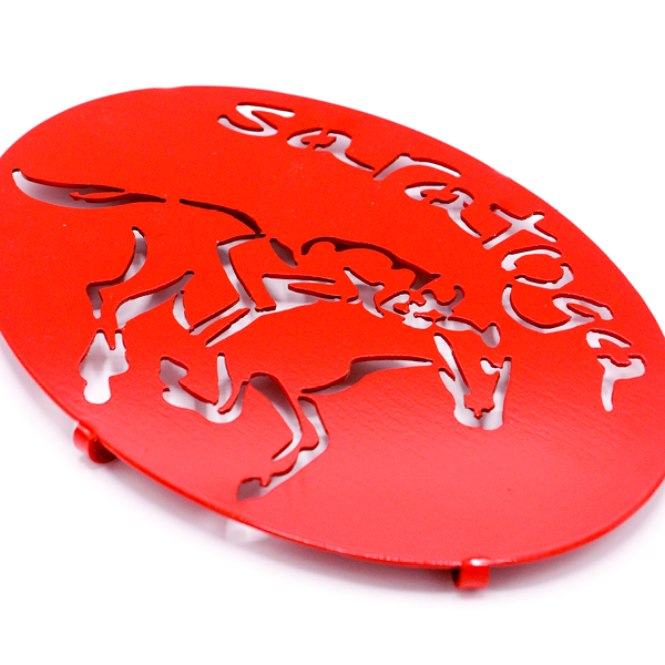 Locally crafted by ‘Love is on Lake George’ in Lake George, NY., each trivet is 10 inches wide and 7 inches tall. We carry three different color variations: Saratoga Red, Graphite Black, and Stainless Steel. The unique design is perfect for a fellow horse lover, or for friends and family familiar with the history and grandeur of the Saratoga community.