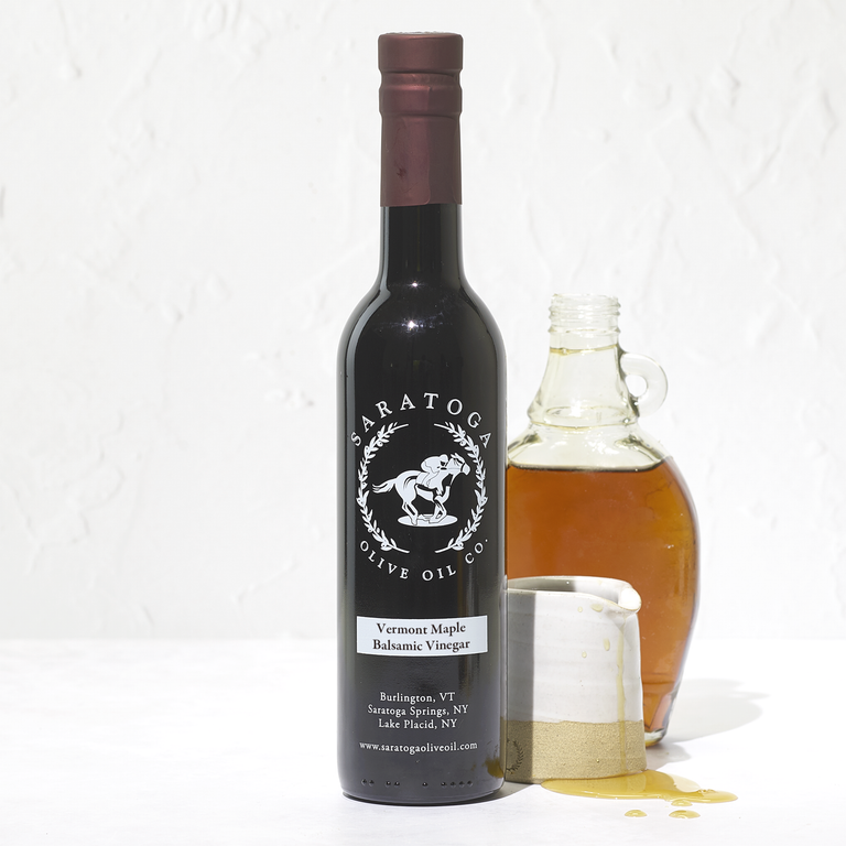 In the vast world of vinegar, our Vermont Maple Balsamic Vinegar stands tall and proud, much like the maple trees that grace Vermont's countryside. This Maple Balsamic is a testament to nature's ability to offer sweetness without compromise. And, while maple syrup is characteristically sugary, the absence of any added sugars in our balsamic ensures a balanced culinary experience that delights without overpowering. Its earthy notes, combined with a subtle tang, make our Vermont Maple Balsamic Vinegar a seasonal favorite, though its versatility knows no seasonal bounds. Imagine starting a crisp winter morning with a generous drizzle of this balsamic over oatmeal, Or picture a warm summer evening, where it melds perfectly with the smoky aroma of barbecued meats. Let's not forget the autumn allure: glazed ham as the centerpiece of a family feast or that delightful union with squash, producing flavors as vibrant as the fall foliage. Since there are no added sugars in our Vermont Maple Balsamic Vinegar other than what is inherent in maple syrup, you can enjoy decadent desserts and sultry brunch plates without the extra guilt! From holiday dinners to fabulous backyard barbecues, you can cozy up to this fall classic all year long!
