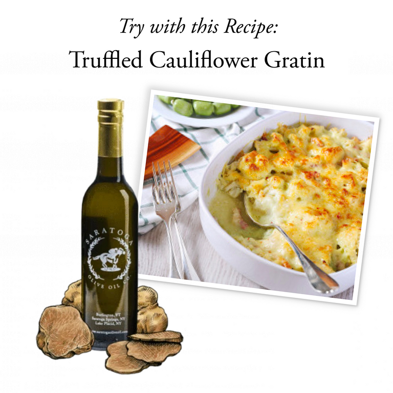 Often compared to shallots with a musky finish, our White Truffle Oil is traditionally made in an artisan fashion without the use of any extracts! It is great on risotto and pasta dishes. Try misting it over white pizza, stirring it into mashed potatoes, and folding it into jasmine or basmati rice. Fancy up your next basket of French fries and it is a-maize-ing drizzled over your next batch of popcorn.